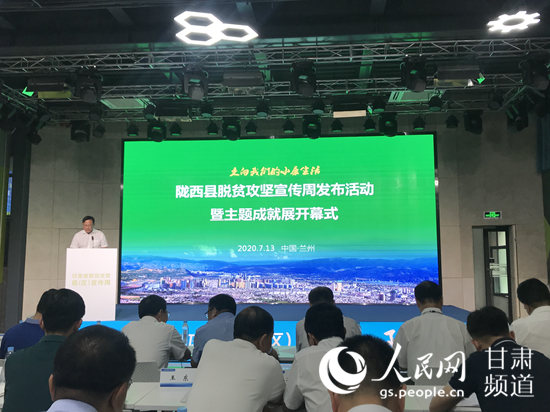人民網蘭州7月14日電(魏怡)7月13日,隴西縣“脫貧攻堅宣傳周”發布活動暨脫貧攻堅主題成就展在蘭州開幕。本次活動是由甘肅省委宣傳部、甘肅省政府新聞辦公室、甘肅省扶貧開發辦公室、甘肅日報社共同主辦的“走向我們的小康生活——甘肅省脫貧攻堅縣(區)宣傳周”第二場發布活動和成就展。
