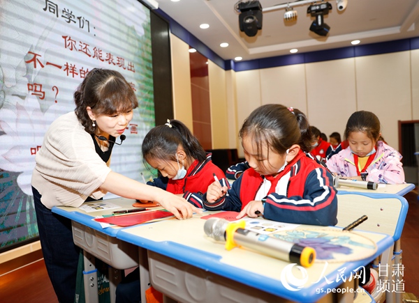 七里河區教育局開展七里河區小學美育學科教材培訓現場授課。(七里河區宣傳部供圖)