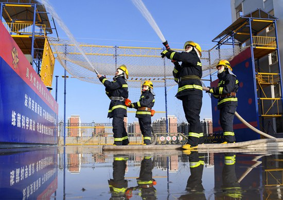 嘉峪關市消防救援支隊正在開展真火撲救科目訓練。(師永紅攝)
