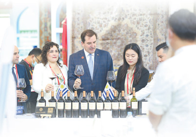 嘉賓在主賓國烏拉圭國家館內交流參觀。