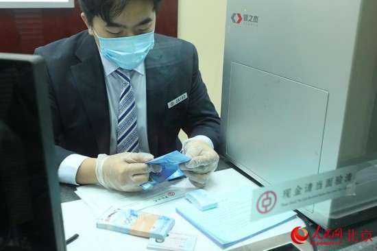 工作人員正在清點紀念鈔。人民網 尹星云攝