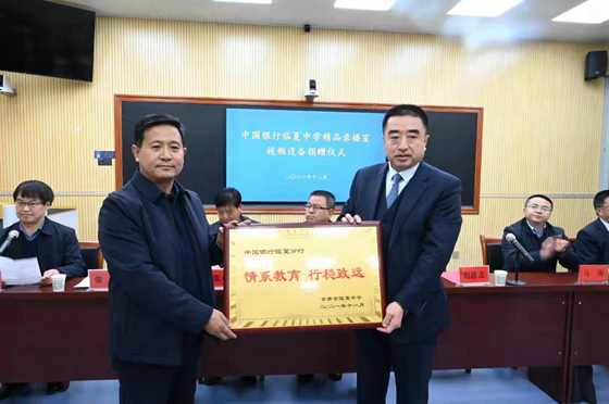 中國銀行臨夏分行向臨夏中學捐贈教學設備。中國銀行甘肅省分行供圖