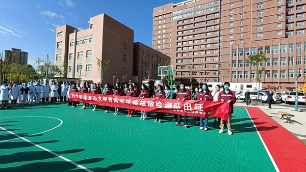 甘肅省臨夏州支援青海省西寧市核酸檢測隊伍出發。甘肅省衛健委供圖