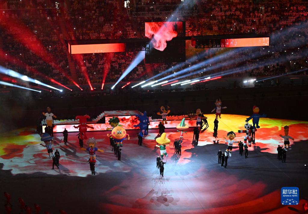 11月20日,歷屆世界杯吉祥物在開幕式上。