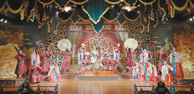 同時,隨著創排的深入,更多文化元素被吸納進來。男子舞略顯單薄,就加入甘肅武威攻鼓子;印度舞、波斯舞不擅長,演員就到北京向東方歌舞團拜師學藝;為還原唐曲韻律,反復斟酌,選擇琵琶古曲《月兒高》作為基調。