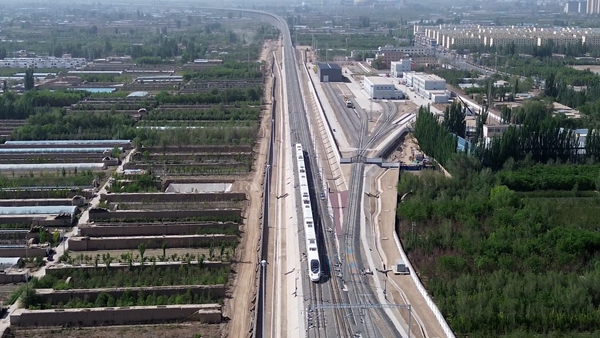人民網蘭州5月8日電 (記者黃帆)5月8日上午9時20分,DJ1801次試驗列車從蘭州新區站駛出,蘭張高鐵蘭武段正式進入為期30天的運行試驗階段。