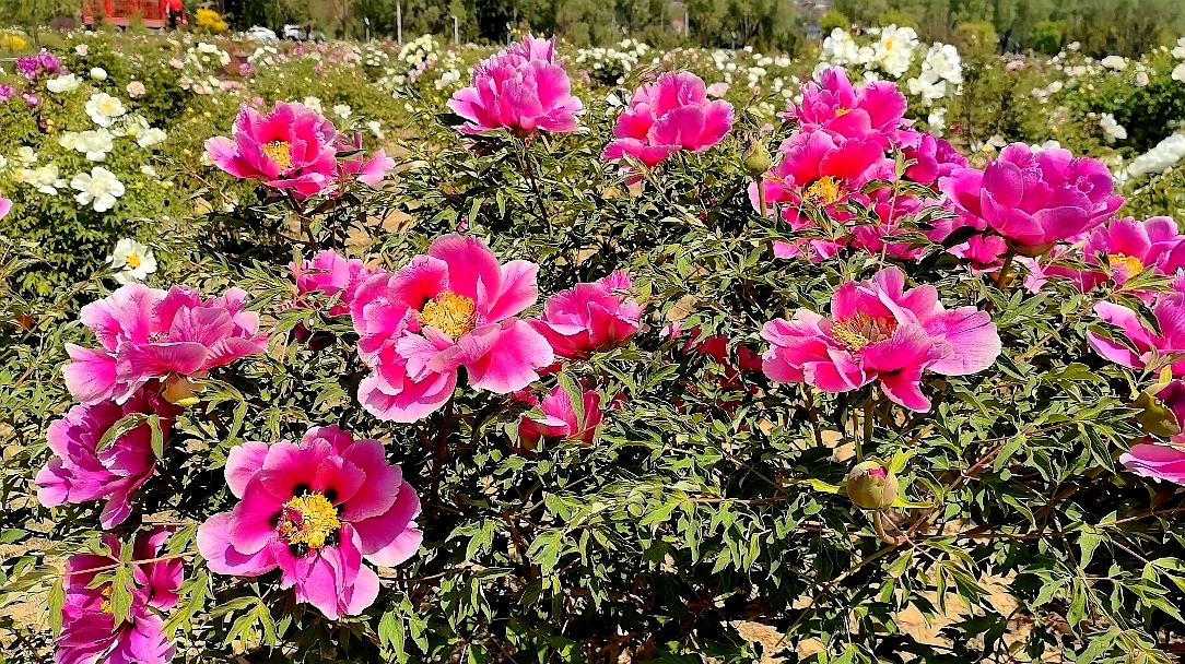 5月15日,康樂縣百年牡丹園內,姹紫嫣紅的牡丹競相綻放,吸引眾多游客紛至沓來。