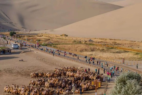 參賽選手途徑鳴沙山月牙泉景區。敦煌市融媒體中心供圖