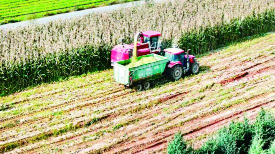 今年,臨夏縣共種植玉米17.59萬畝,其中糧飼兼用型青貯玉米達4.7萬畝,可產出青貯飼料12.9萬噸,預計11月份全面完成青貯工作。圖為新集鎮青貯玉米種植基地收割現場。( 臨夏融媒記者 馬博文文/圖)