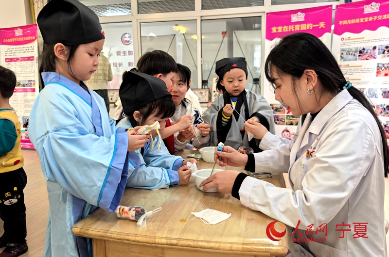 “現在年輕父母更看重科學育兒,兒童保健需求越來越高?!遍Z亞飛介紹,根據現實需要,銀川市中醫醫院推出“岐黃護幼”行動,通過健康講座、推拿培訓、膳食指導等形式,把中醫適宜技術和“治未病”理念送進托育機構?;顒蝇F場,醫生們還展示了穴位貼敷、小兒推拿等中醫外治療法,“不用打針吃藥,揉揉小手就能調理體質”的便捷優勢,引得不少家長紛紛駐足體驗。